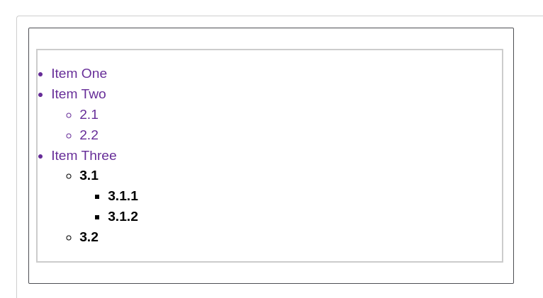 main class 하위 자식 중 Item One, Item Two, Item Three까지는 main의 css 영향을 받지만