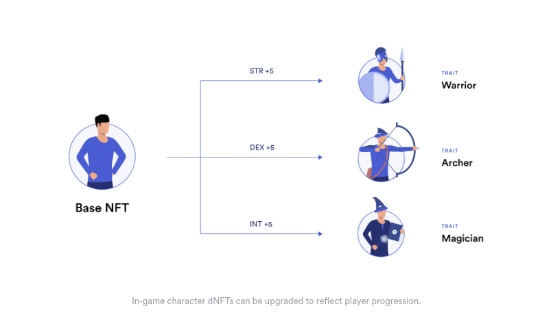 그러나 이 모델은 정적 대체 불가능한 토큰에 첨부된 메타데이터가 블록체인에서 발행되면 고정되기 때문에 영구성이라는 한계가 있습니다. 실제 자산을 토큰화하거나, 진행 기반 비디오 게임을 구축하거나, 블록체인 기반 판타지 스포츠 리그를 만드는 등의 사용 사례에서는 데이터를 업데이트해야 하는 경우가 많습니다. dNFT는 고유 식별자를 유지하면서 메타데이터의 일부분을 업데이트할 수 있는 두 가지 장점을 모두 갖춘 접근 방식을 제공합니다.