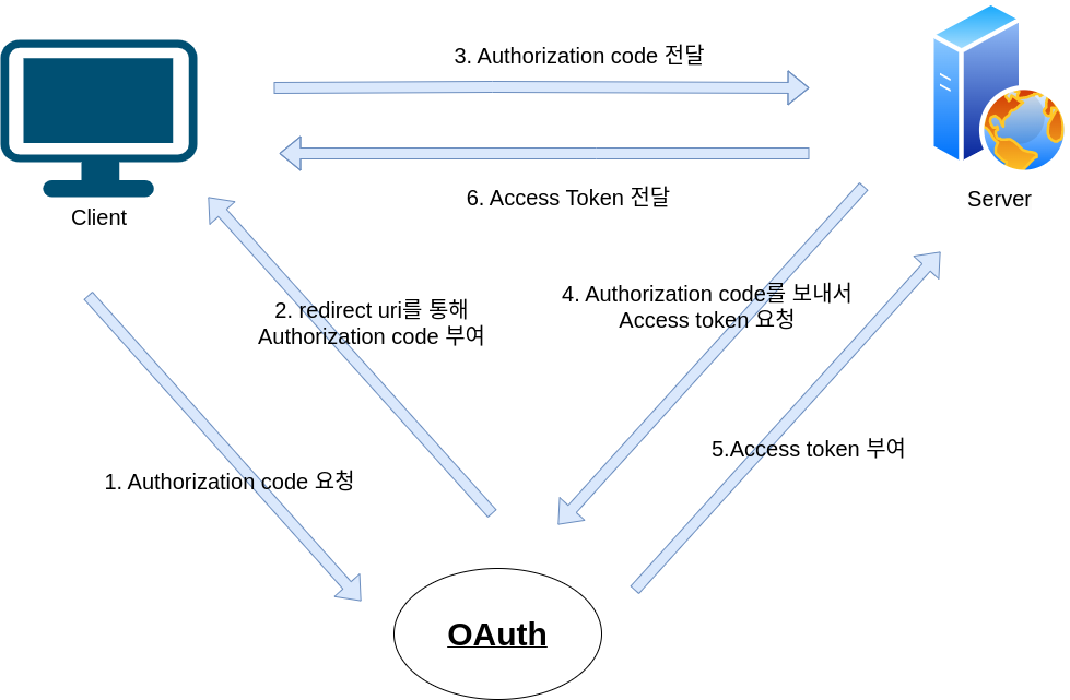 Authorization code : access token을 발급받기 전에 필요한 code client ID로 이 code를 받은 후 client secret과 code를 이용해 Access Token을 받아옵니다.