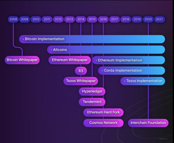 블록체인 기술의 간략한 역사, 기존 플랫폼의 특성으로 인해 제한되는 특정 목적 또는 애플리케이션별 블록체인의 등장, 코스모스가 이를 극복하기 위해 설계된 방법.
